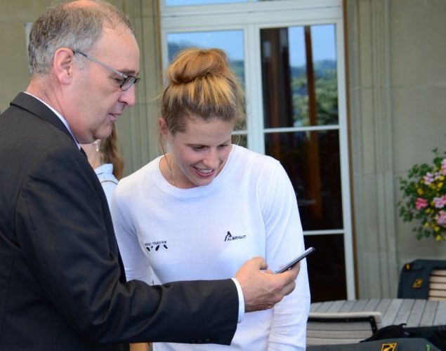 Der Bundesrat Guy Parlemin lud zum gemütlichen Apéro im traditionsreichen Bernerhof im Bundeshaus ein. Die Einladung ehrt mich besonders. Bei den Gesprächen mit dem Bundesrat war seine Begeisterung und sein Interesse für den Sport zu spüren. Er würdigt die Medaille und wertschätzte die sportliche Leistung. Gemeinsam haben wir auf den Vizeweltmeistertitel angestossen. Vielen Dank für die Wertschätzung an den Bundesrat und seine Entourage.